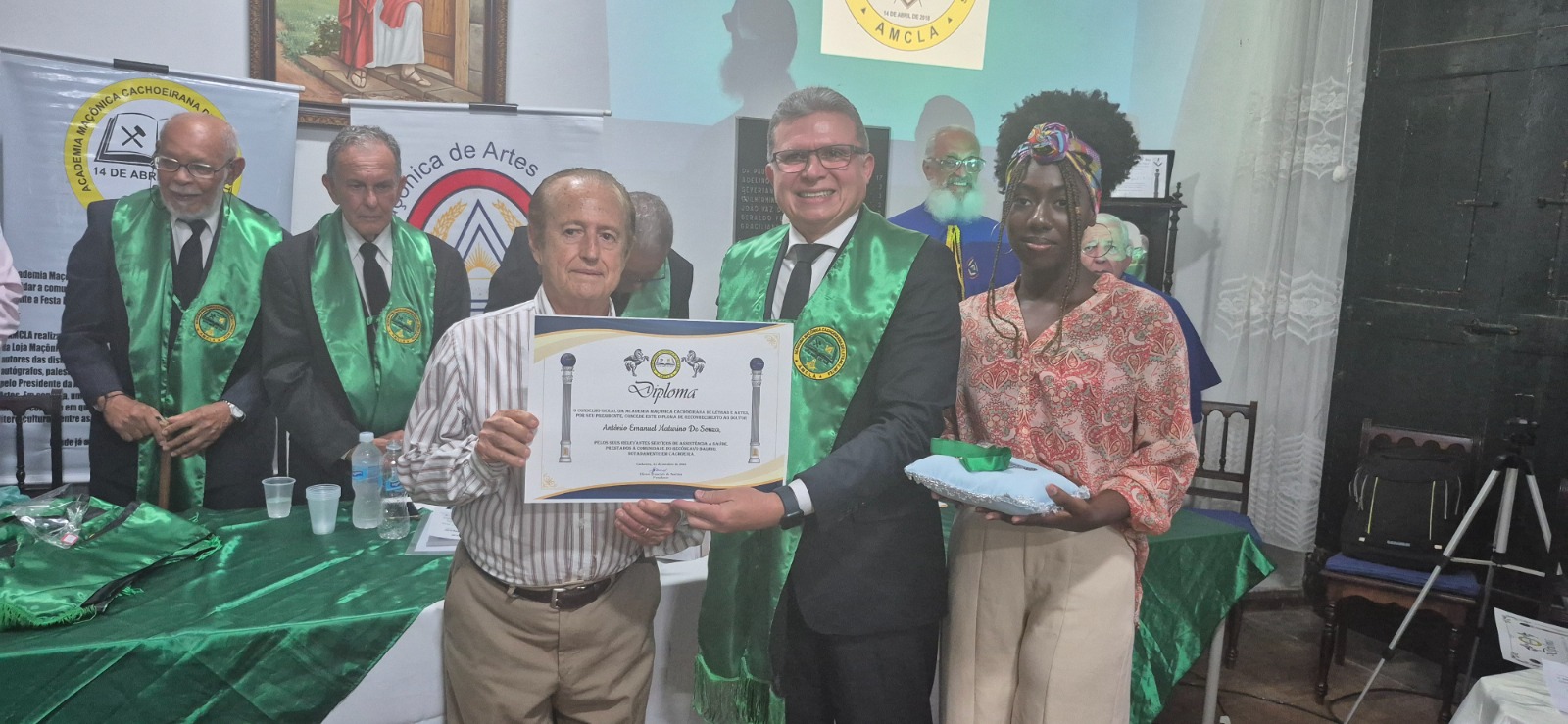 A Academia Maçônica Cachoeirana de Letras e Artes (AMCLA) realizou, com sucesso e grande alegria, a solenidade de Diplomação e Posse de seus novos acadêmicos. A sessão, que marca um novo e importante ciclo para a AMCLA, foi presidida pelo Presidente da Academia, o Confrade Eliezer Francisco de Santana, ladeado pelo Vice-Presidente da AMCLA, o Confrade José Aloisio Souza de Santana e secretariado pelo Confrade Candido Vaccarezza, que também preside a AMALBA (Academia Maçônica de Artes e Letras da Bahia).