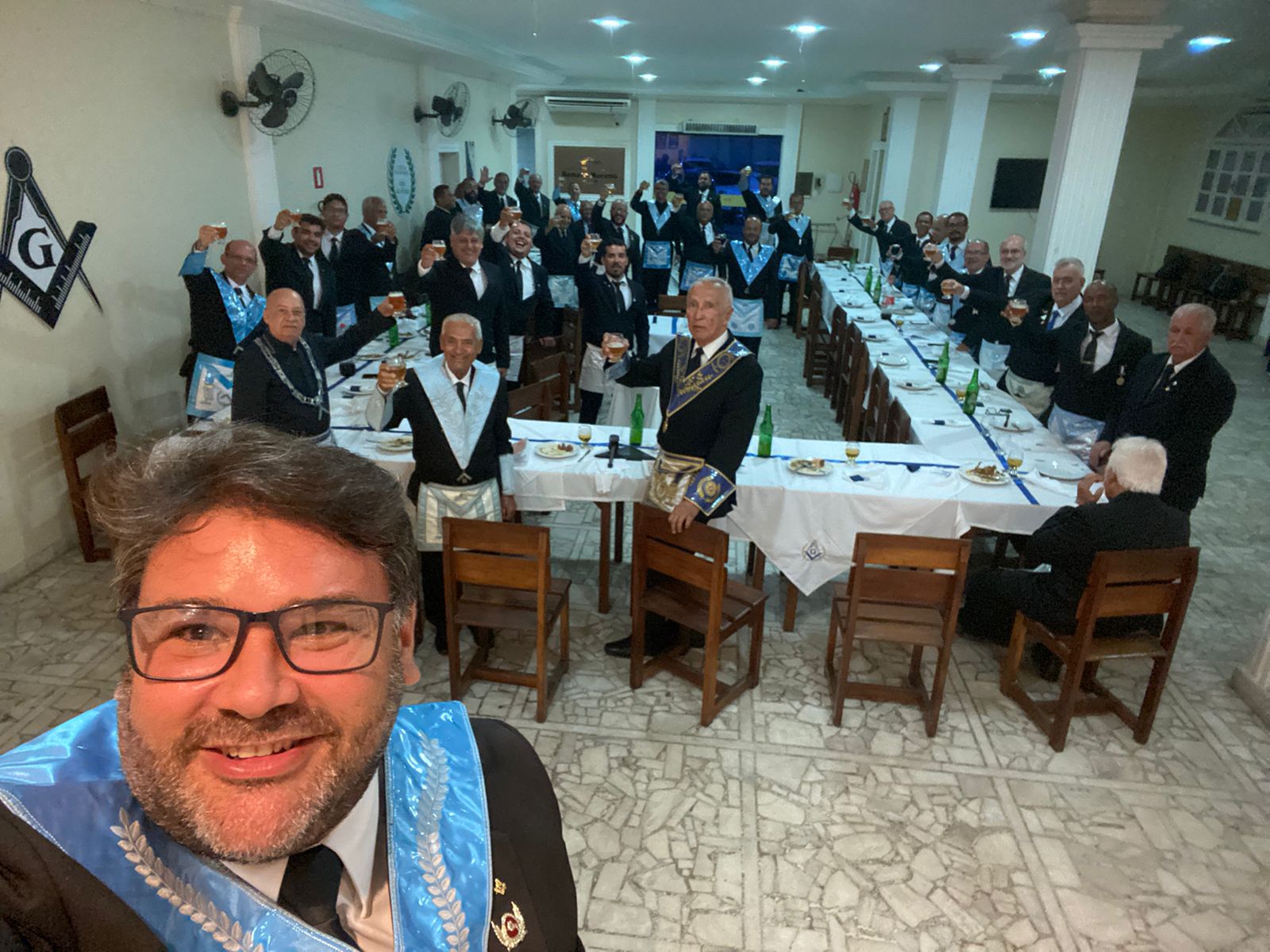 Os canhões fizeram fogo com pólvora amarela da melhor qualidade, garantindo entusiasmo em cada brinde. O Venerável Mestre Régis Aragão aproveitou o momento especial ao lado dos irmãos para fazer uma homenagem aos decanos da Loja que receberam um brinde especial.